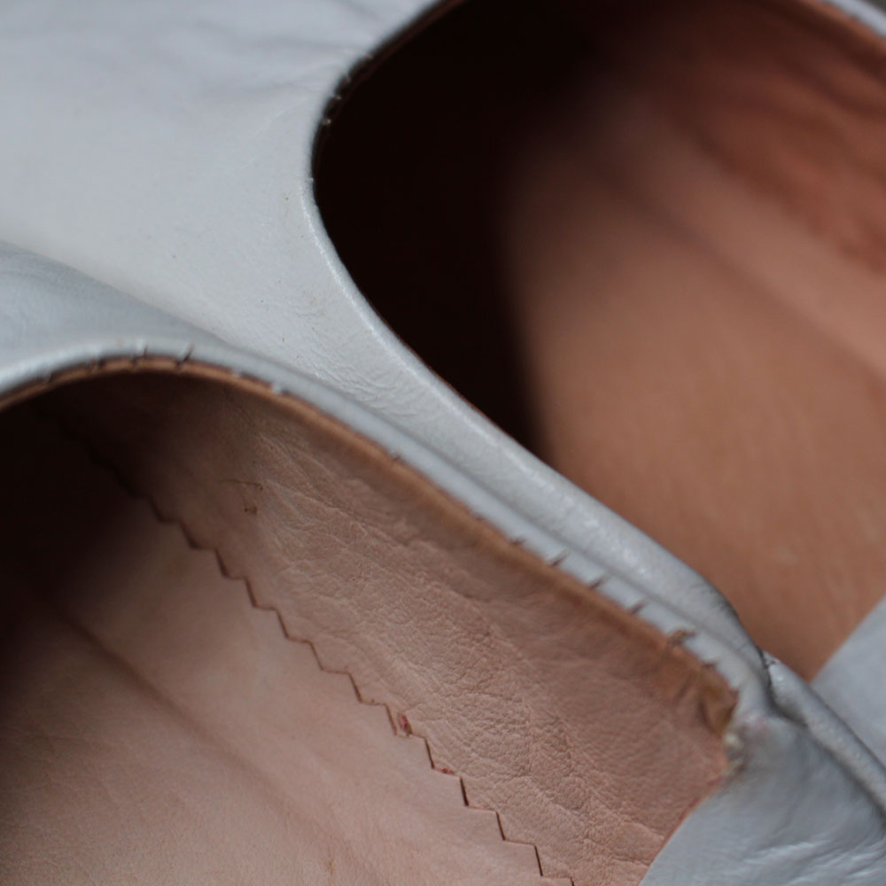 羊革でできたバブーシュは夏はサラサラと素足に心地よく、冬は空気を含んで暖かいのが特徴です。一度履くと他のルームシューズには戻れない、バブーシュ沼にはまってしまうこと間違いなしです。