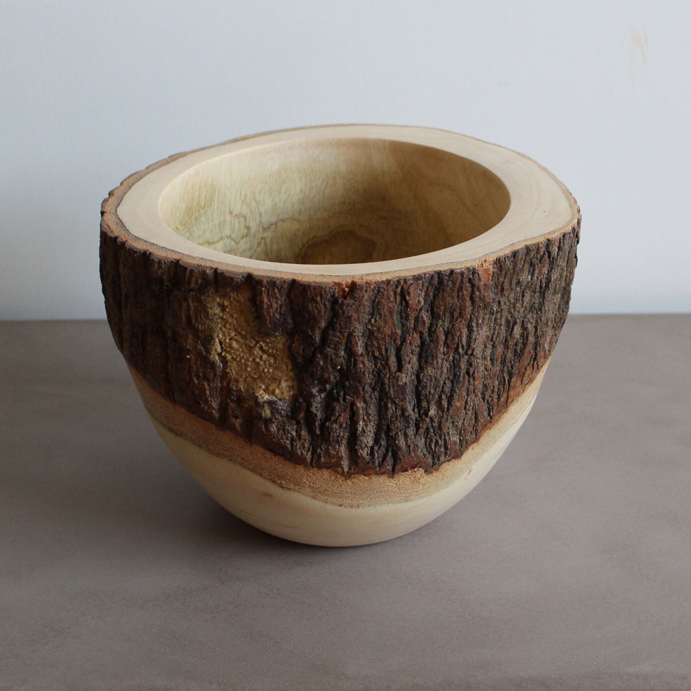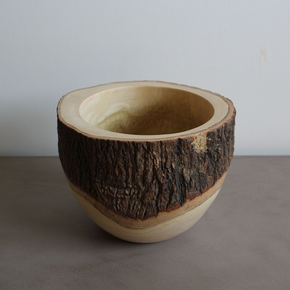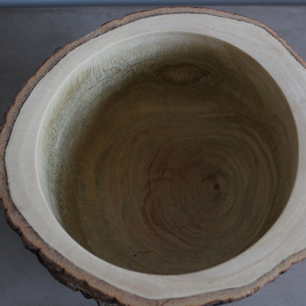 種皮の質感と滑らかな木肌のコントラストが特徴です。