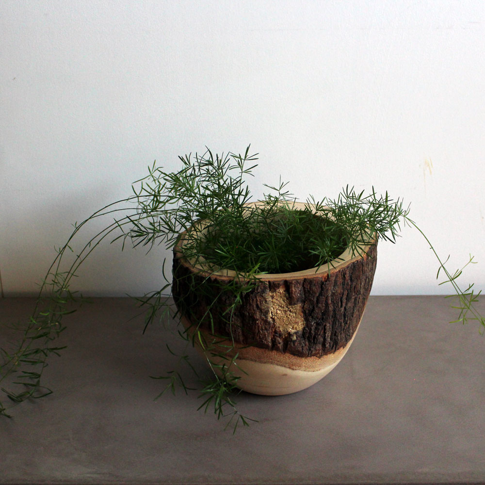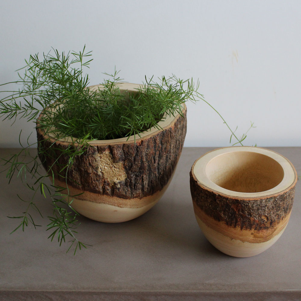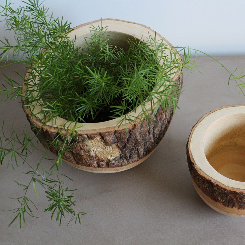 マンゴーの木の切り株をそのまま生かしたデザインのポット。