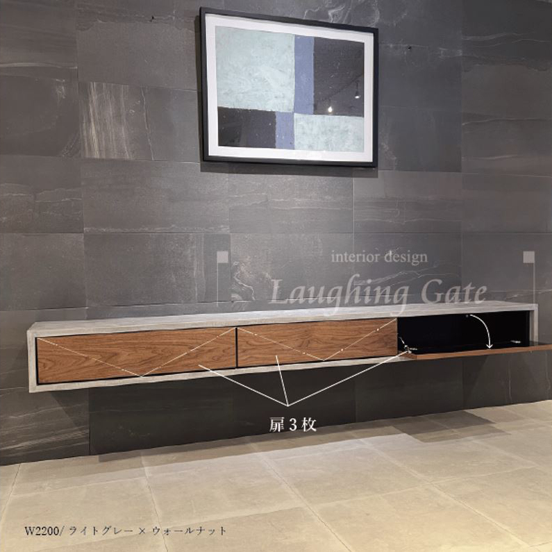 取り付ける高さによってテレビ台にもコンソールテーブルにもなるスマートな家具