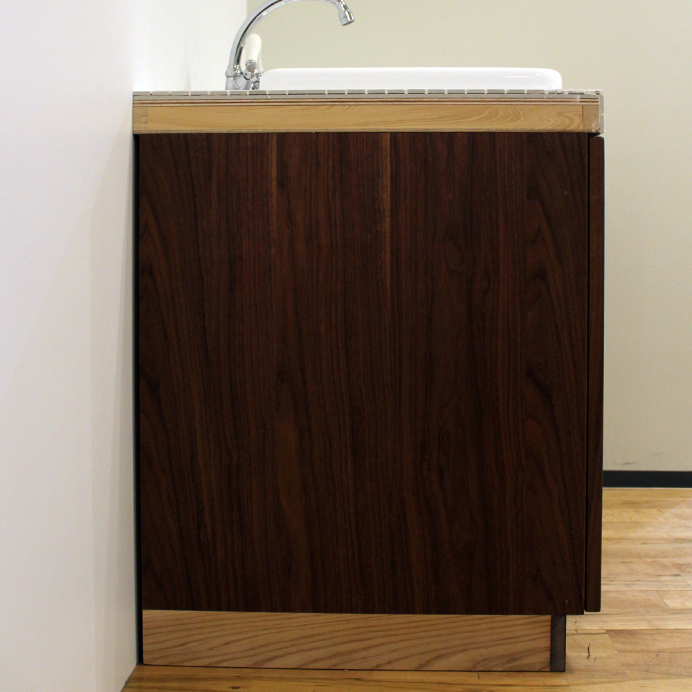 関西限定!現品のみ対象 ウォールナット材×25角タイル 洗面台