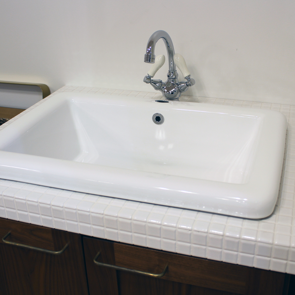 多少の水ハネを気にせず、気兼ねなく使えるのもタイル天板ならではの魅力です。