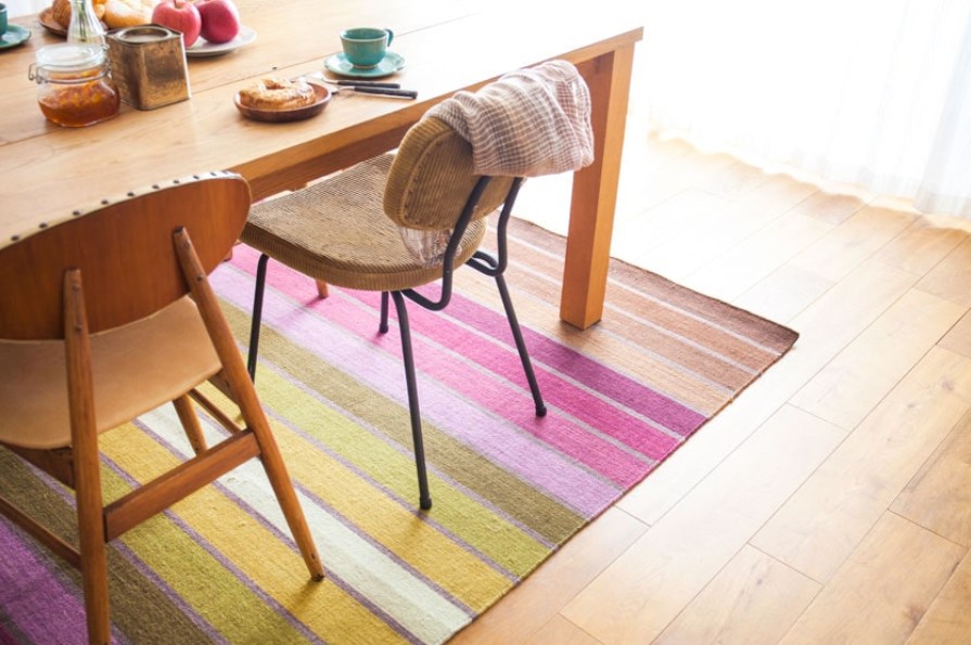 天然素材のじゅうたんで、色合い豊かにやさしく心地いい空間作り