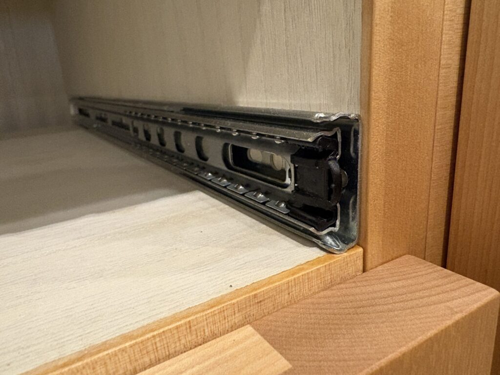 今回は、チェストやTVボードなどの引き出しについているレール、