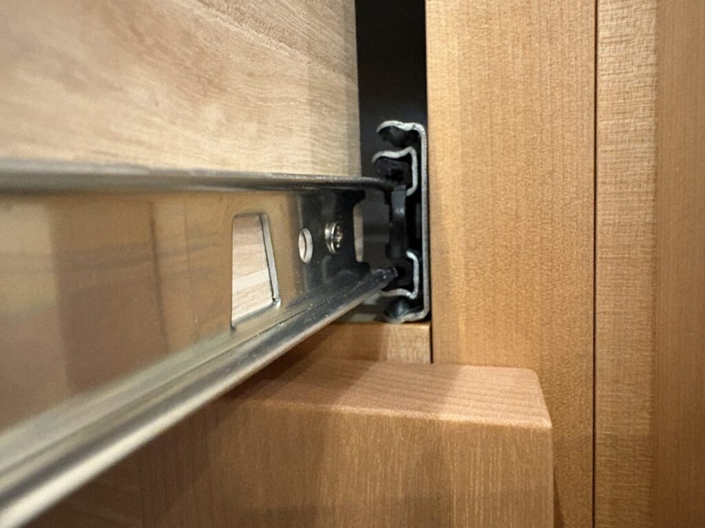 取り付け後は、必ず引出しの開閉を数回行い、スムーズに動くかどうかをご確認ください。レールが正しくはまっていれば、引き出しは左右均等にスライドし、ぐらつきもありません。