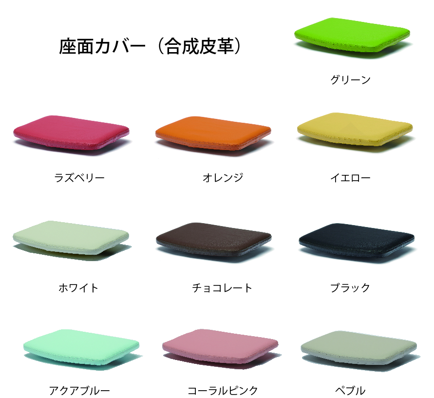 ボディカラーは8色、座面カバーは布地りが15色と合成皮革が10色の計25色から選んでいただくことができ、組み合わせは自由です!お子様のお好きな色を選んでいただくのもよし!インテリアに合わせたお色にしていただくのもよし!