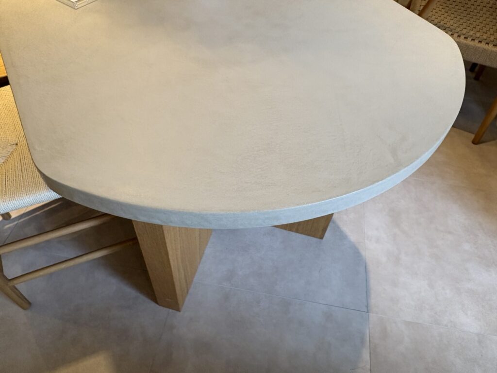 また、天板に丸みがある分、面積が狭くなるので、テーブルが小さく見えてしまいます。そのため、実際のサイズは同じでも、視覚的には一回り小さく見えてしまうことがあります。大人数で料理を並べたり、大きなお皿を置いたりする際には、やや手狭に感じるケースもあるかもしれません。