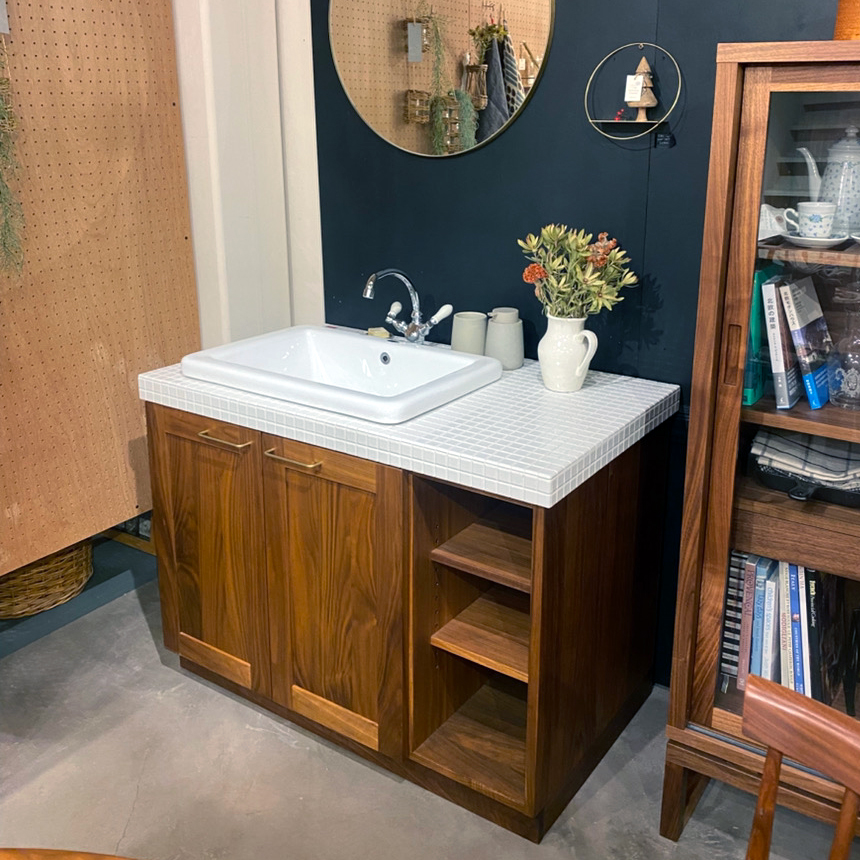オススメ⑤ 【ウォールナット材×タイルの洗面台】
