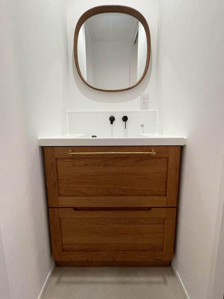 大阪府泉南郡F様:ブラックチェリー材 洗面台
