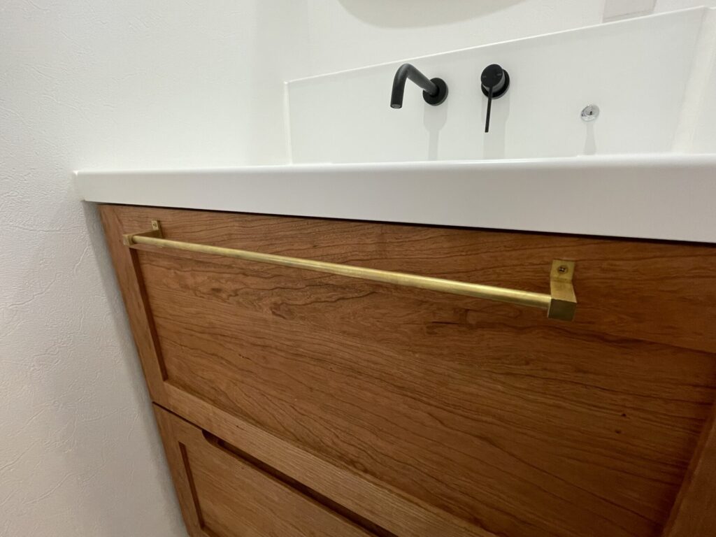 取手には真鍮製のパーツを使用し、落ち着いたゴールドの輝きがブラックチェリー材の赤みを帯びた木肌と美しく調和。