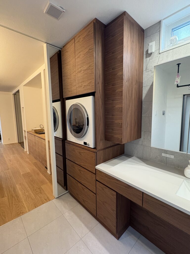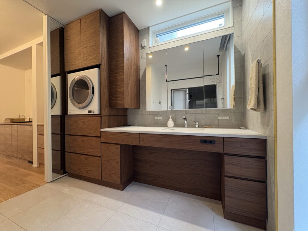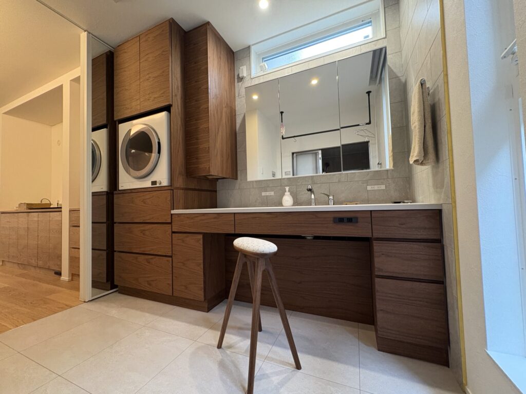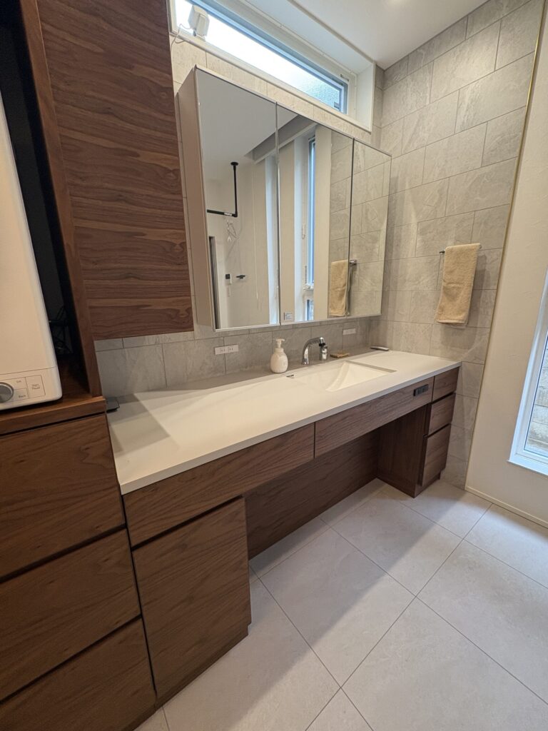 日々の動作をより快適にしながら、空間全体に統一感と温もりをもたらす洗面スペースに仕上がりました。