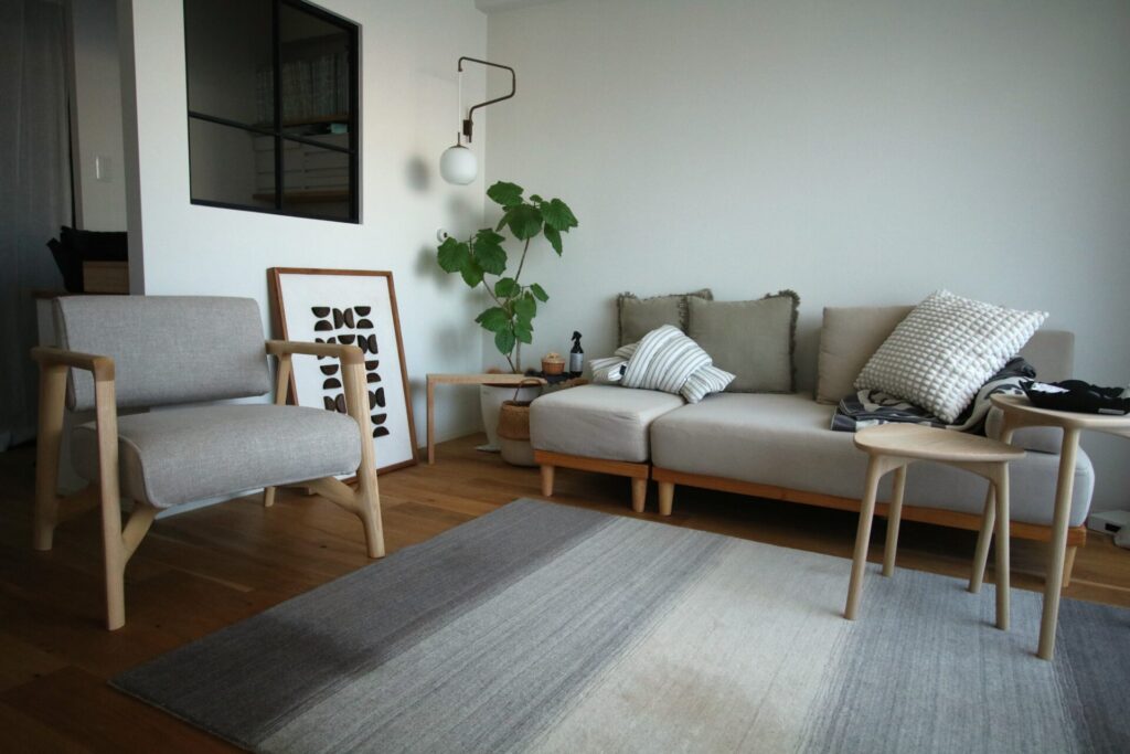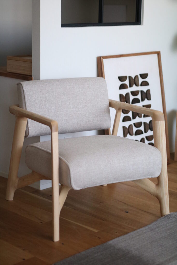 大阪府堺市M様邸にお届けした、ホワイトアッシュ材オイル仕上げの一人掛けソファ。