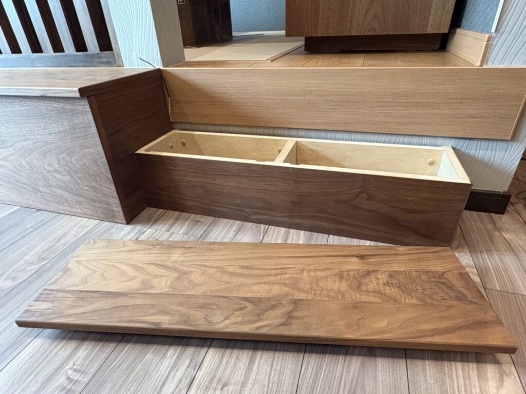 大阪市S様:ウォールナット材 収納付きステップ台とベンチ